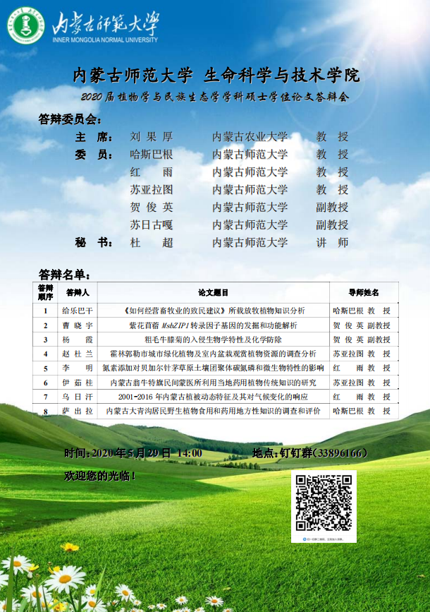 必赢国际437官网2020届植物学与民族生态学学科硕士学位论文答辩会