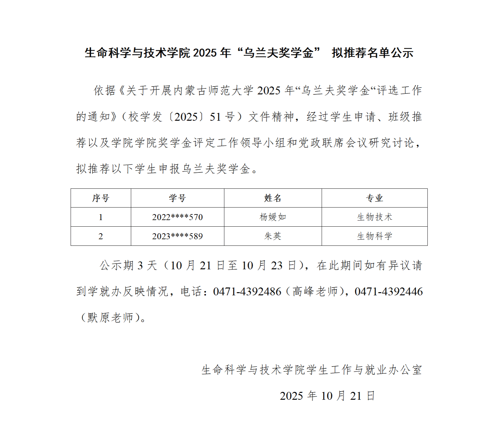 必赢国际437官网2025年“乌兰夫奖学金”拟推荐名单公示